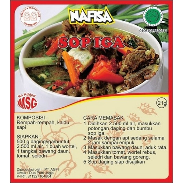 Nafisa Bumbu Instant No Msg Sop Iga from nourishindonesia.com Maybe you would like to learn more about one of these? We did not find results for: Check spelling or type a new query.